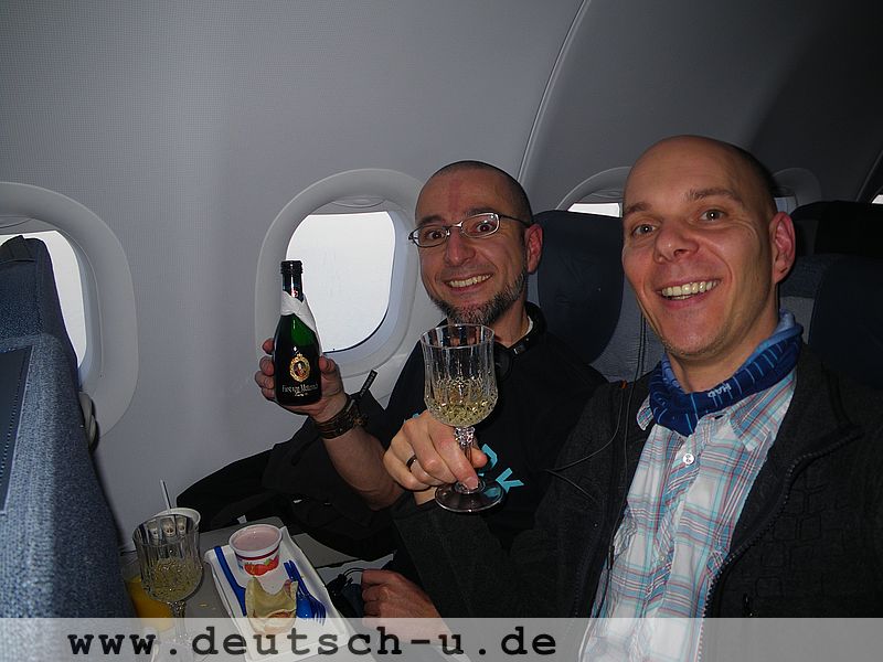 Im Flugzeug drinnen ist dann alles schon wieder wesentlich entspannter. Nicht zuletzt durch den wider erwarten guten Film „Nachts im Museum“!