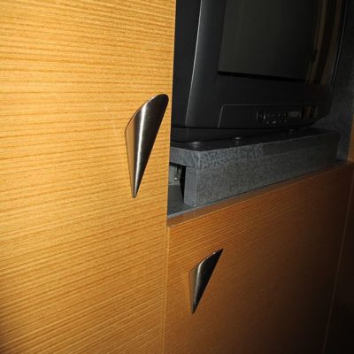Das Zimmer ist schon mal sehr schön, halbwegs geräumig, neu und sauber. Möbel und Boden lassen keinerlei Wünsche offen, die Betten übertreffen jegliche Erwartungen. Angenehm von der Härte her und nahezu unendlich von der Größe. Das ist definitiv eine Spielwiese! Das Bad kann sich in Punkto Sauberkeit durchaus sehen lassen. Und wenn einem auf dem Klo ganz langweilig wird, kann man auch ein Schwätzchen halten…