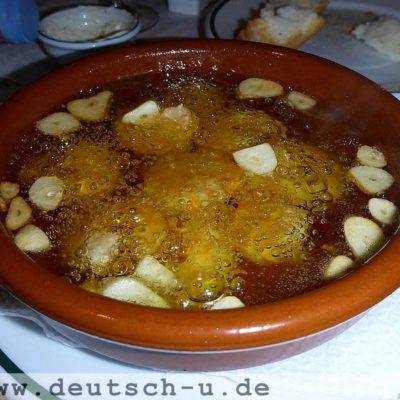 Und dann gibt es etwas „Richtiges“ zu essen. Sprich anstatt der Tapas kommen nun die Raciones dran. Prinzipiell dasselbe, nur größer und nicht kostenlos. Da gibt es Variationen von Kroketten (in Spanien übrigens mit Bechamel Soße als Basis, nicht Kartoffelbrei), gebackenen Käse, Flamenquin (aufgerolltes Cordonbleu) und natürlich Salchipapa!